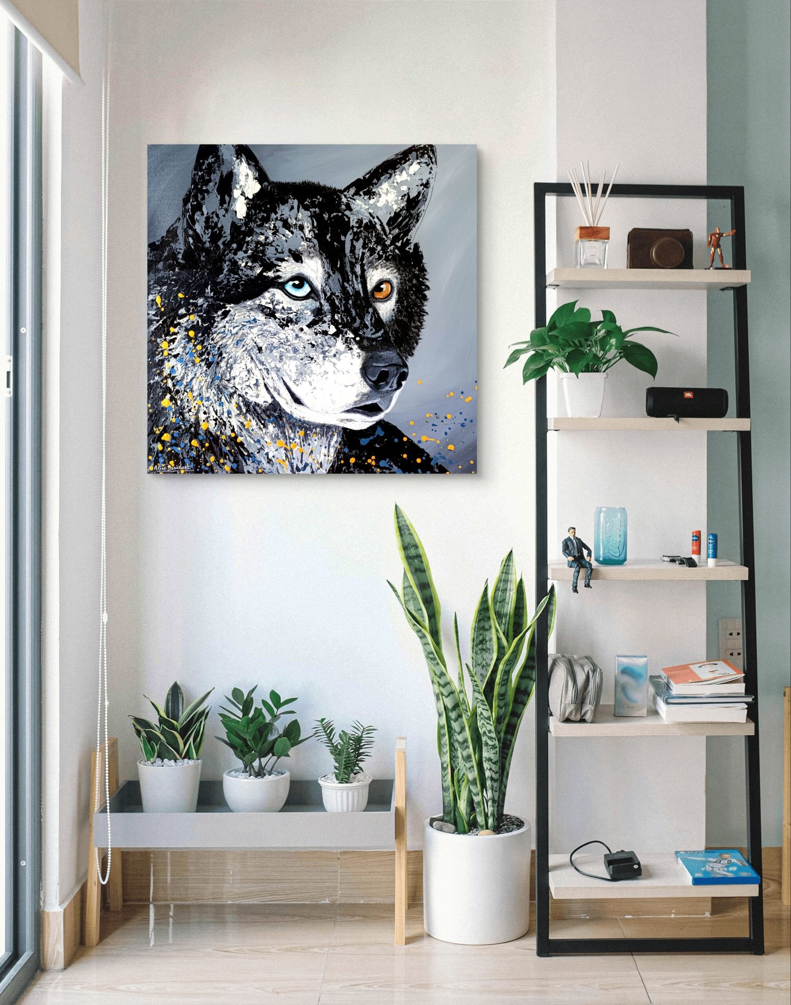 Ses yeux, l’un bleu et l’autre ambré, révèlent une dualité profonde : clairvoyance et ancrage, intuition et puissance, ciel et terre. Ce contraste exprime la richesse de l’âme, faite de multiples facettes qui coexistent et s’harmonisent.